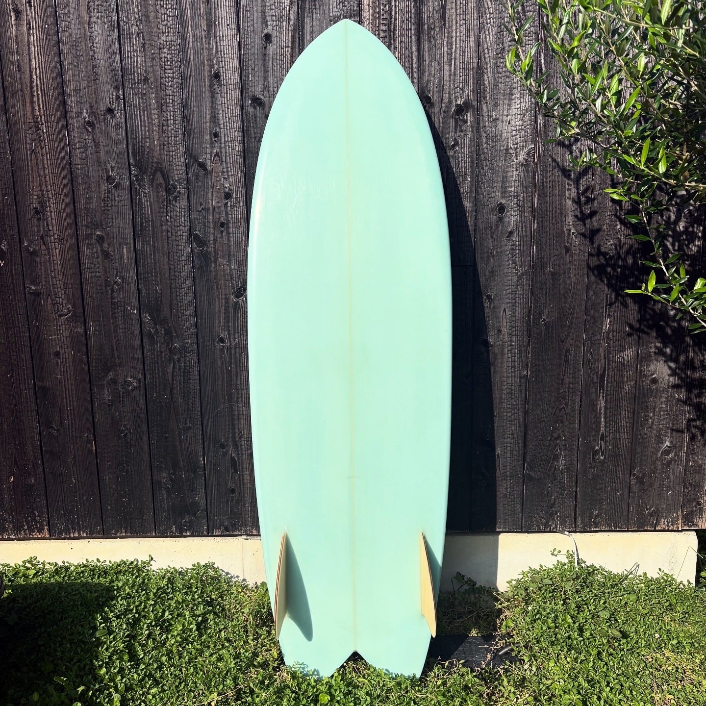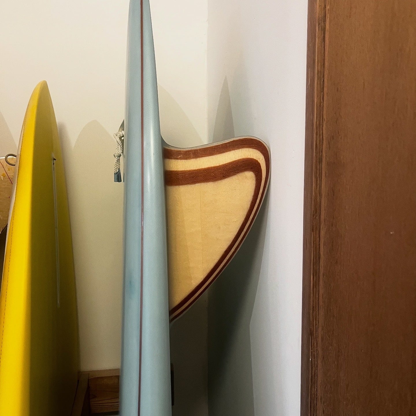ブルーグレーの艶消しに銅のピンラインが入っています。
